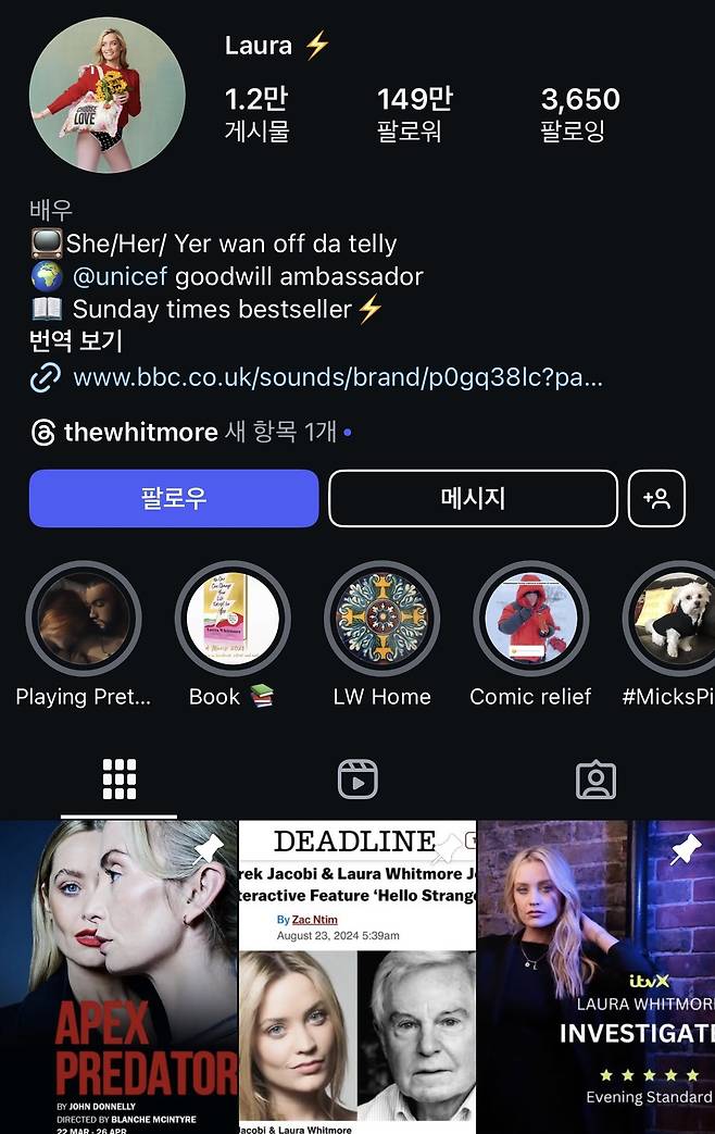 | ▲ 방송인 로라 위트모어(Laura Whitmore) 인스타그램 계정 |