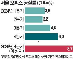 이 회사는 2026년 말 서울 오피스 건물 공실률이 8.7%, 2029년에는 14% 이상으로 치솟을 것이라고 전망했다.