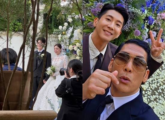배우 이병헌이 아닌 영화감독 이병헌이 사회로 나선 것. 이 밖에도 김태균과 문세윤, 이천수 등이 하객으로 함께 했다. 특히 문세윤은 이날 오후 김종민의 결혼식 2부 사회를 맡았던 만큼 바쁜 일정을 자랑했다.