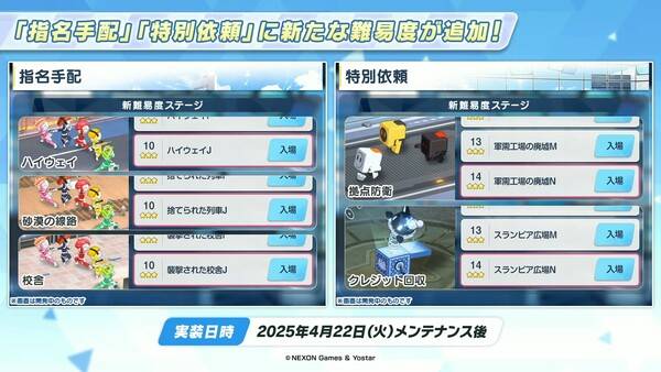 하이랜더 철도학원 소속 캐릭터가 추가됨에 따라 따라 기존 콘텐츠가 확장된다. 현상수배 '고속도로'의 보상에 하이랜더 철도학원 스킬 성장 재료를 추가한다.