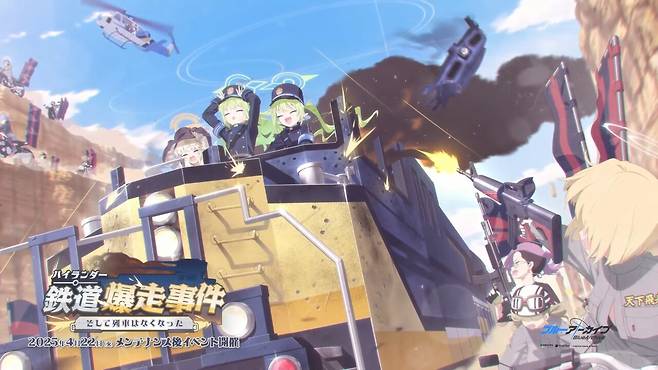 신규 이벤트 '하이랜더: 철도 폭주 사건 -그리고 열차는 사라졌다-'가 공개됐다. 해당 이벤트는 블루 아카이브 서비스 이래 처음으로 하이랜더 철도학원을 무대로 한다. 이벤트 참여시 배포 캐릭터 '우츠미 아오바'를 얻는다.