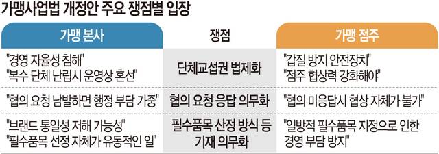 하지만 가맹 본사 측은 단체교섭권 법제화에 부정적이다.