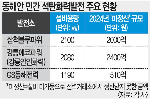 20일 업계에 따르면 강릉에코파워와 삼척블루파워, GS동해전력 3곳은 지난해 일제히 적자를 기록했다. 지난해 처음 가동한 삼척블루파워를 제외한 나머지 2곳에서 적자가 난 것은 이번이 처음이다. 지난해 3곳의 가동률이 20~30% 수준에 머문 것이 직접적인 원인으로 꼽힌다. 강릉에코파워와 삼척블루파워는 각각 2400억원 2000억원, GS동해전력은 510억원이 가동률 하락 때문에 발생한 ‘미정산’ 적자라고 밝혔다.