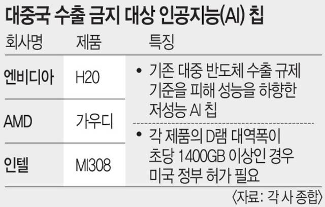 엔비디아와 인텔에 이어 AMD의 저성능 AI 칩인 MI308도 수출 규제 대상에 포함됐다. MI308은 AMD가 만든 AI 전용 가속기 칩 중 하나로 AI 모델을 학습하거나 실행하는 데 특화된 제품이다.
