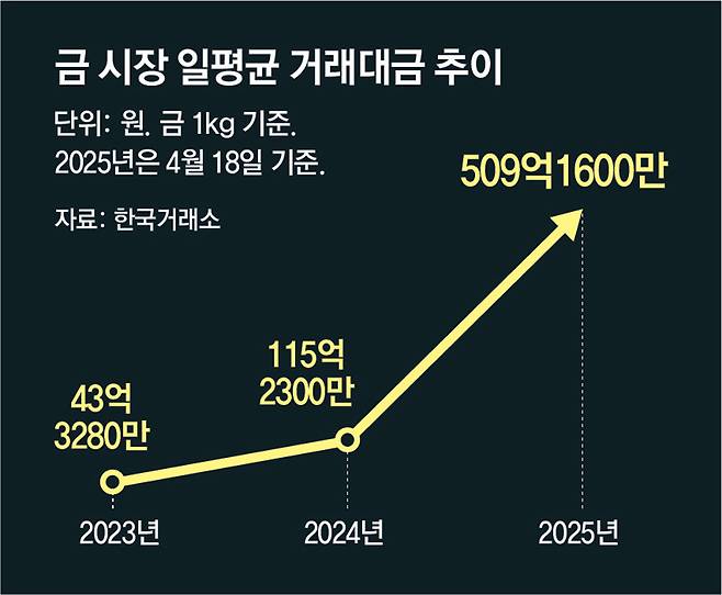 투자자들의 금 거래가 부쩍 늘어난 것은 미국 도널드 트럼프 2기 행정부 출범 이후 관세 전쟁으로 불확실성이 커지고 있기 때문이다.