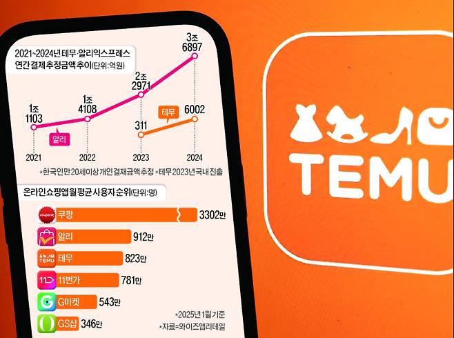 리테일 분석 서비스 와이즈앱리테일에 따르면 지난 1월 알리익스프레스와 테무의 월간 활성 이용자 수(MAU)는 각각 912만4000명, 823만4000명으로 집계됐다. 쿠팡에 이어 2~3위를 차지할 정도로 영향력이 크다.
