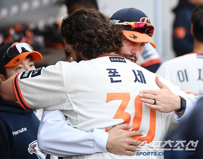 흥미롭게도 2, 3, 4, 5선발이 폰세와 순서대로 포옹했다.