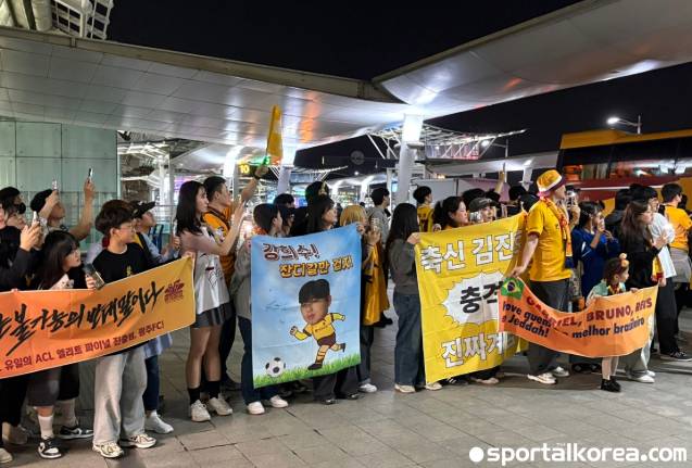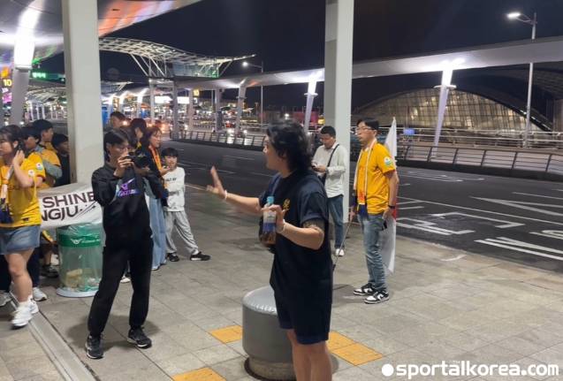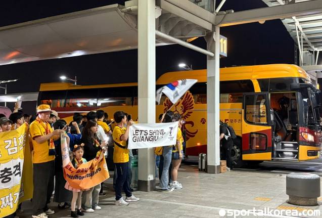 광주는 팬들이 공항으로 편히 오실 수 있게 버스를 제공했다. 이에 팬들은 삼삼오오 모여 밝은 분위기 속에 대화를 나누며 선수단을 맞을 준비를 했다. 20시가 넘어감에 따라 곳곳에서 태극기, 플랜 카드, 유니폼 등이 등장했다.
