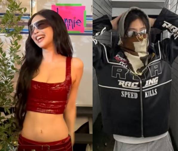 공개된 사진 속 제니는 지난주 무대 위에서 보여줬던 화려한 모습과 다르게 후드 티와 선글라스, 스카프, 가죽재킷으로 편하면서도 힙한 패션을 완성했다.