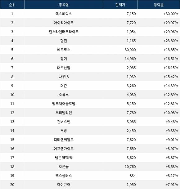 [서울데이터랩]엑스페릭스 30% 상한가…실시간 상승률 1위