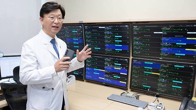 ▲ 인천세종병원 환자 모니터링 시스템을 소개하는 박진식 혜원의료재단 이사장
