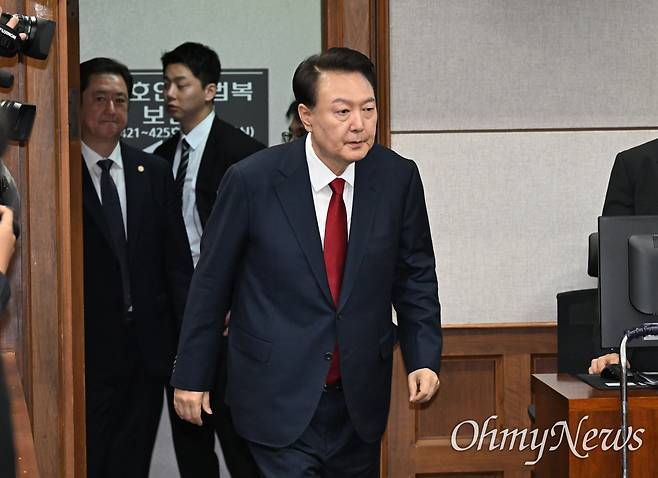 [오마이포토] 지귀연 재판부 촬영 허가... 피고인석에 앉은 윤석열