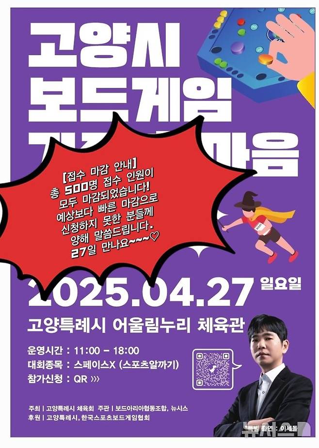 이 행사는 고양시체육회가 주최하고 보드아리아협동조합, 뉴시스가 주관하며 고양시와 한국스포츠보드게임협회가 후원한다.