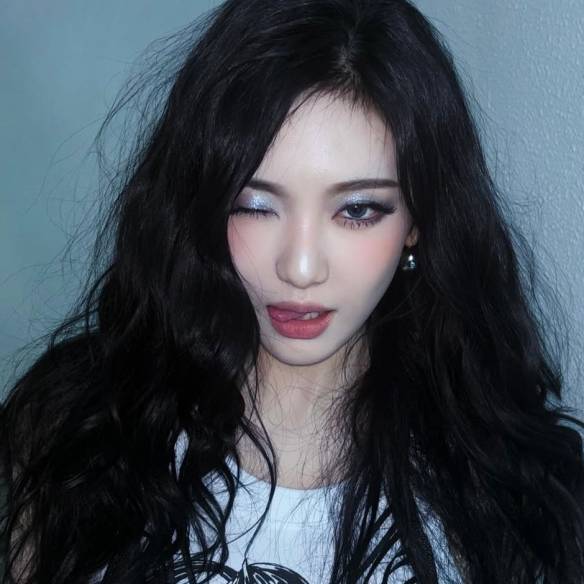 나날이 레전드 미모를 찍어가고 있는 에스파 닝닝의 다크 세이렌 메이크업. 실버리한 글리터가 잔뜩 들어간 쉐도우를 눈두덩이 전체에 바르고 립은 매트하고 누디한 컬러를 발라 연출했다. 언더 아이는 짙은 브라운 컬러로 음영을 주어 치명적이고 시크한 느낌을 연출했다.