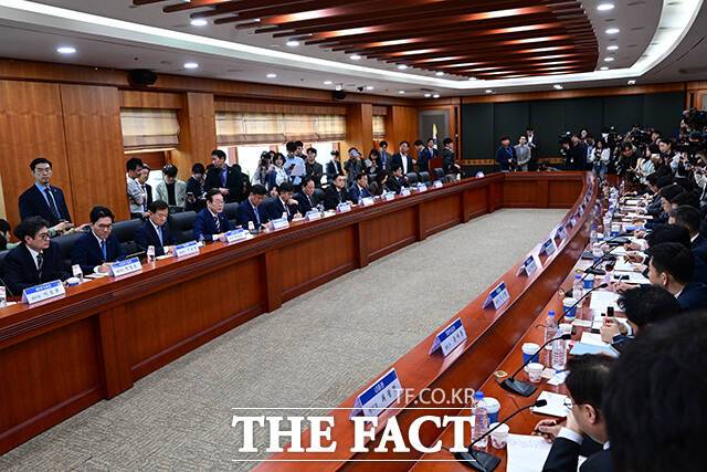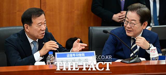 [더팩트ㅣ남윤호 기자] 이재명 더불어민주당 대선 예비후보가 21일 오전 서울 여의도 금융투자협회에서 열린 '자본시장 활성화를 위한 정책간담회'에 참석해 마이크를 꺼달라며 두드리고 있다.