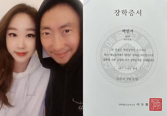특히 박명수의 아내 한수민은 지난 20일 민서 양이 1학년 장학생으로 선발됐다며 "이번에 무용과 전체(한국무용, 발레, 현대무용)에서 1명만 나왔는데 생각도 못했던 장학생이 되다니"라는 소식을 전해 놀라움을 자아냈다.
