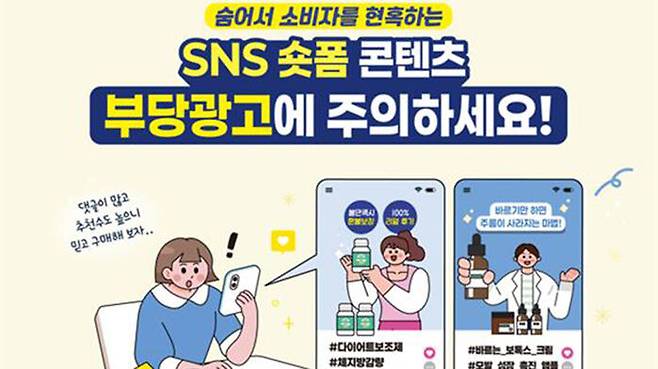 식약처는 SNS에서 소비자가 숏폼 콘텐츠 등 부당 광고에 현혹되지 않도록 주의하고 제품의 허가 정보를 식품안전나라 또는 의약품안전나라에서 확인 후 구매할 것을 당부했습니다.