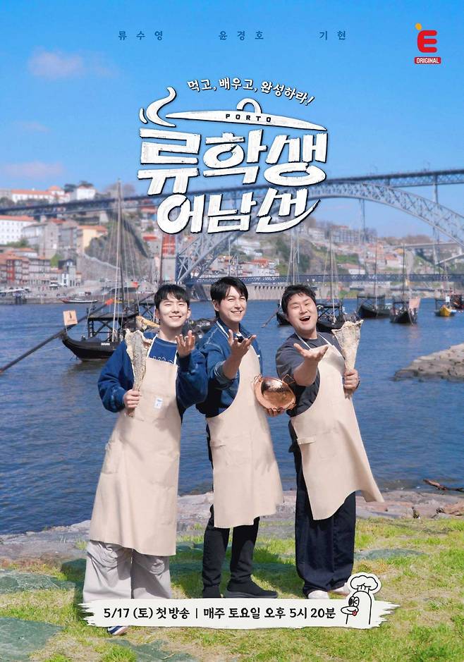 배경에는 ’항구 도시‘ 포르투의 명성답게 다양한 선박들이 바다 위 이국적인 풍경을 자아내 한국에서 경험하기 힘든 새로운 맛을 상상하게 한다. 요리 유학 느낌이 제대로 풍기는 포스터에 숨은, 유학지에 대한 힌트들이 ’류학식‘에 어떻게 녹아들었을지 궁금하게 만든다. ‘류학생 어남선’에서만 만날 수 있는 독특한 현지 음식과 매일 밤 진지하게 새로운 ’류학식‘을 개발한 ’삼형제표 레시피‘에 대한 기대도 커지는 바.