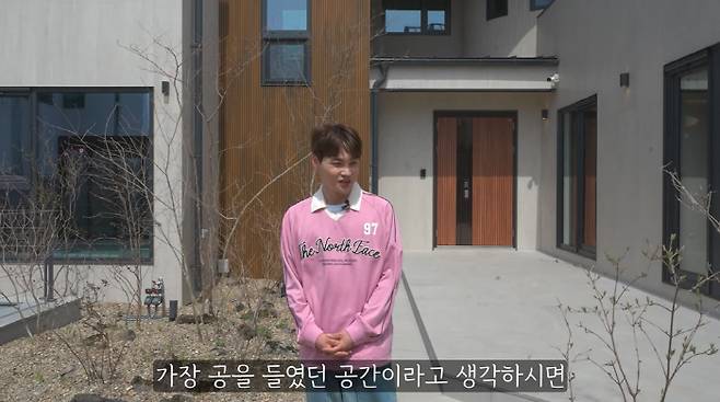 박서진은 먼저 그림같은 주택 마당에서 "주택 외부에 포세린 세라믹 타일을 붙였다. 작은 타일이 아니라 줄눈이 안 보이게 시공했다. 여기가 바닷가 쪽이라 나무는 염분기에 취약할 수 있다고 해서 합성목 사이딩으로 시공했다. 나무가 아니라 관리하기 편하고 따뜻한 분위기를 연출한다"라며 외부 시공에 대해 설명했다. 이어 "집 조화가 너무 예쁘다. 집 사이 간격이 좁다 보니 프라이버시가 취약할 수 있어 파고라를 설치해 도로쪽 시선을 차단했다"라고 덧붙였다.