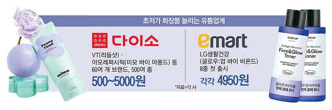 채널 간 경계가 허물어지며 초저가 뷰티는 유통 생태계를 뒤흔들 트렌드로 자리 잡고 있다. 해당 시장을 이끌고 있는 다이소는 앞서 2021년 뷰티 전문 라인을 론칭하며 국내외 중소 뷰티 브랜드와 손잡고 1000~5000원대 초저가 화장품을 잇달아 선보였다.