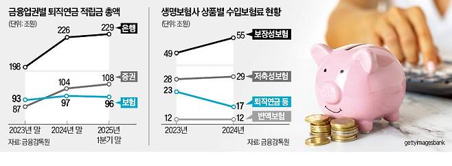 보험사들도 퇴직연금 사업에 소극적이라는 분석이 많다. 2023년 시행된 새 회계기준(IFRS17)에선 연금 상품보다 장기 보장성보험 판매에 집중하는 게 실적 개선에 유리하다. 금감원에 따르면 작년 국내 생보사의 보장성보험 수입보험료는 전년 대비 13.1% 증가했지만, 퇴직연금 보험료는 26.2% 급감했다.