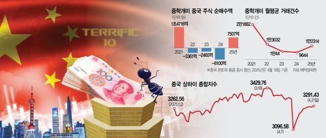 순매수 행렬도 이어지고 있다. 국내 투자자들은 올 들어 4개월여간 중국 본토와 홍콩 주식 7507억 원어치를 순매수했다. 2022년부터 지난해까지 3년 연속 매도 우위를 보이며 총 1조 3926억 원어치의 중국 주식을 팔아치운 모습과는 대비되는 양상이다.