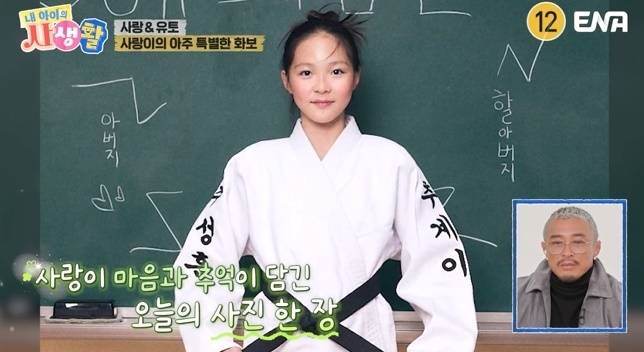 화보 촬영이 끝난 후, 사랑이는 특별한 사진 촬영을 추가 요청했다. 아빠와 할아버지에게 남다른 의미가 있는 유도복을 입고 사진을 남기고 싶었던 것이다. 유도복 오른팔엔 아빠 ‘추성훈’, 왼팔엔 할아버지 이름 ‘추계이’가 새겨져 있었다.