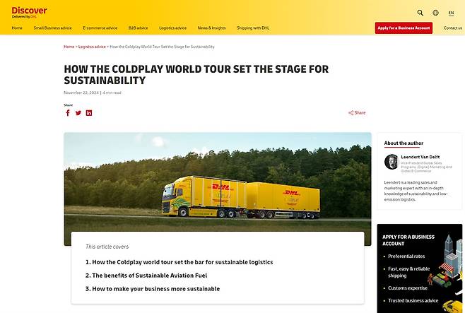 | ▲ 물류기업 DHL의 콜드플레이 공연 탄소 절감 방안에 관한 보고서 |