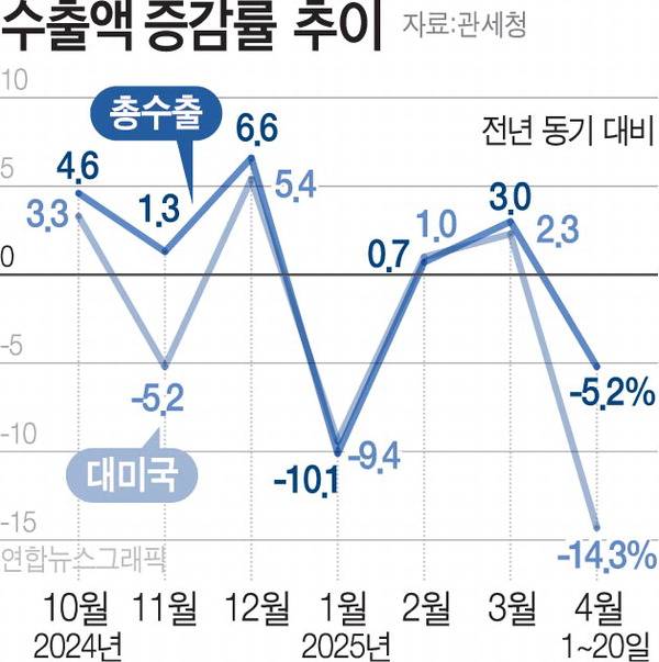4월 수출액 5.2% 급감…美 관세 충격 시작됐다(종합)