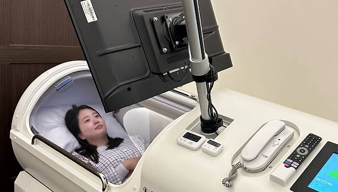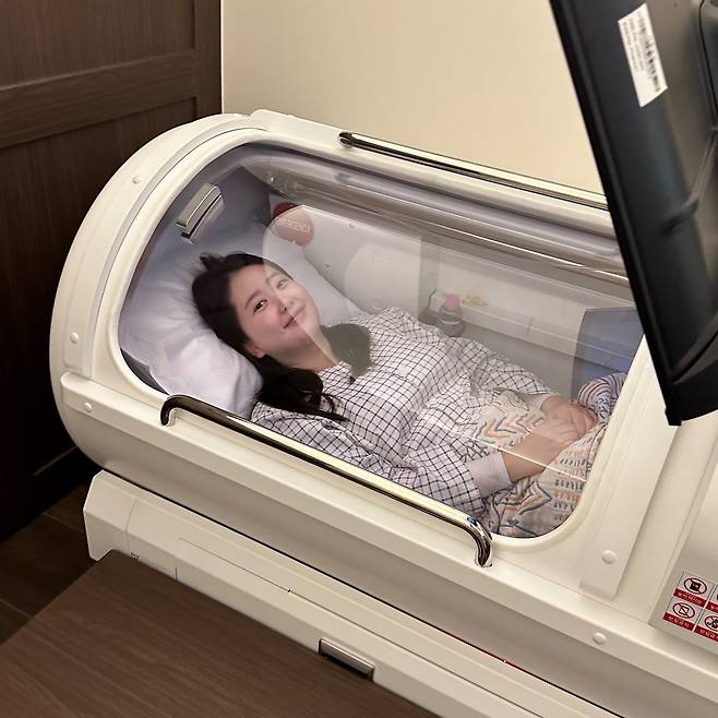 이어 "그런 아내를 위해서 그리고 저속 노화가 꼭 필요한 저를 위해서 꾸준히 받고 있는 고압산소케어 소개합니다"라며 "확실히 받고 나면 컨디션 차이가 난다"고 추천했다.