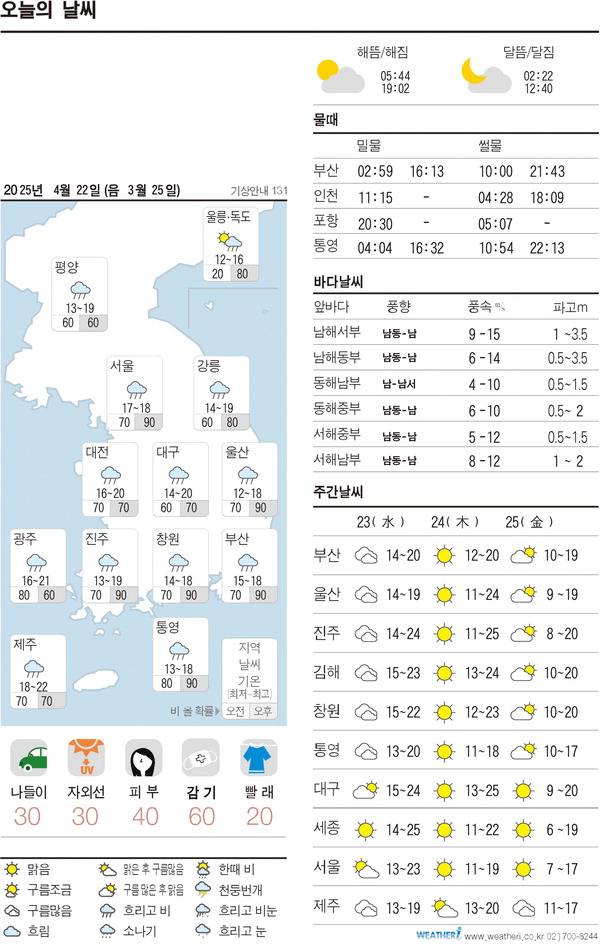 오늘의 날씨- 2025년 4월 22일