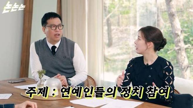 연예인들이 정치에 참여하고 목소리를 내는 것에 대해서도 의견을 나눴다. 장혜리는 지지하는 당이 없다고 밝히며 "블랙리스트 오르는 경우도 봤다. 굳이 의견을 내야되나 싶다"라며 조심스러워했고, 신정환과 임덕영도 공감했다.