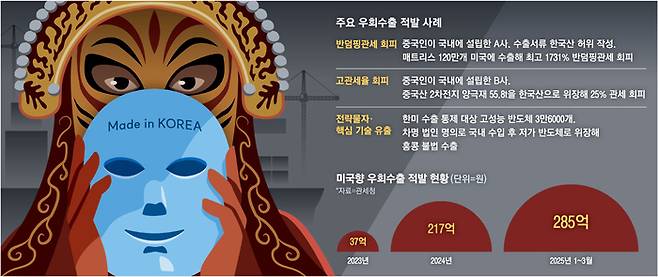 관세청 관계자는 “최근 미국 정부의 무역정책 변화에 따라 상호관세와 수입규제를 회피하기 위해 그 대상이 되는 제품들을 우리나라를 거쳐 우회 수출하는 행위가 크게 증가하고 있다”고 설명했다.
