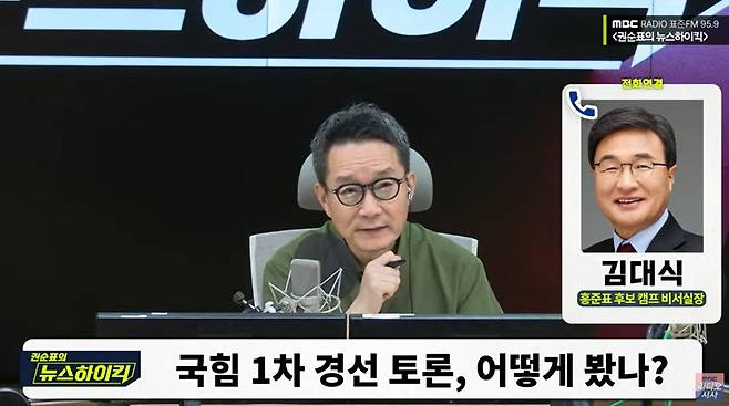 ☏ 진행자 > 김대식 국민의힘 의원이었습니다. 홍준표 후보 캠프 비서실장입니다.