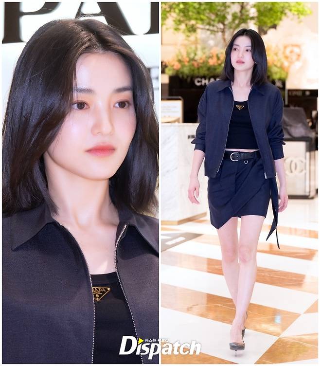 김태리는 올블랙 룩으로 시크한 매력을 뽐냈다. 인형같은 미모가 돋보였다.