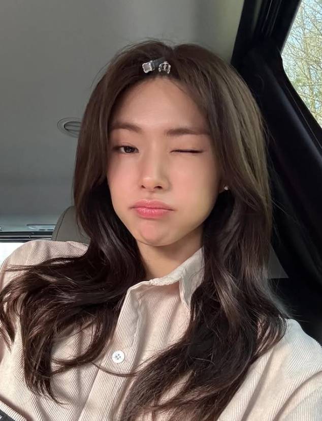 차량 안에서 머리핀을 꽂고 윙크 포즈를 취하는 모습에서는 장난기 가득한 표정이 그의 발랄한 매력을 더하고 있다.