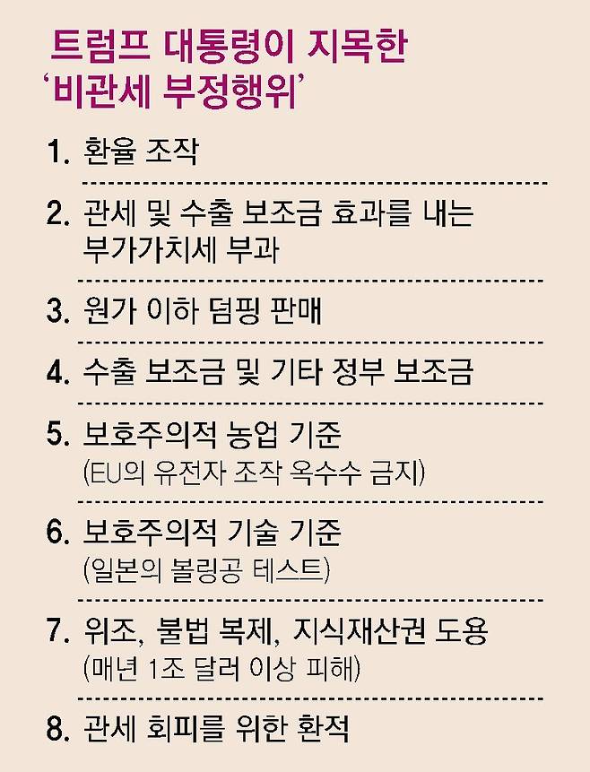 트럼프, ‘8대 비관세 부정행위’ 열거하며 “환율조작” 첫번째 적시