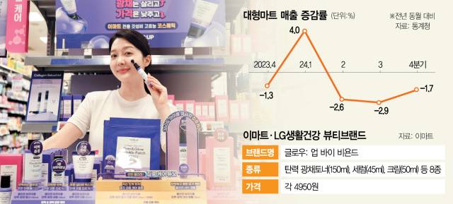 단독 뷰티라인을 신설해 e커머스 업체들의 독주를 막고 새로운 매출원을 창출할 수 있다는 점에서도 긍정적이다. 통계청이 집계한 지난해 분기별 유통업체 매출액에 따르면 온라인 쇼핑몰 거래액이 매분기 증가세를 보인 것과 달리, 대형마트는 4개 분기 중 3개 분기에서 전년 동기 대비 매출이 감소했다.