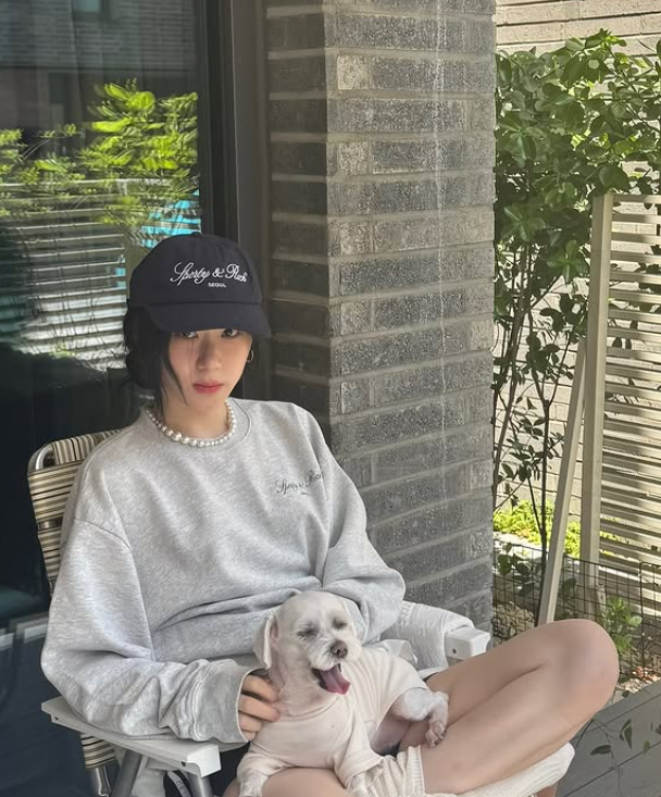 공개된 사진 속 채령은 그레이 컬러의 루즈핏 맨투맨과 아디다스의 블랙 반바지를 매치해 기본에 충실한 캐주얼룩을 연출했다.