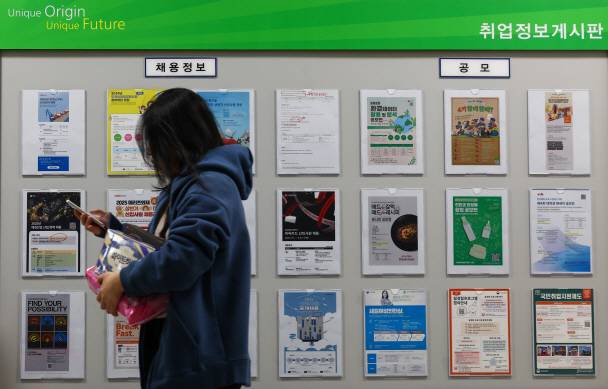 [14일 통계청 국가통계포털(KOSIS)에 따르면 올해 1분기 20대 후반(25∼29세) 취업자 수는 242만명으로, 1년 전보다 9만8천명 줄어 2013년 3분기(-10만3천명) 이래 가장 큰 폭으로 감소했다. 사진은 이날 서울 시내 한 대학교에 설치된 취업정보 게시판. (사진=연합뉴스)]