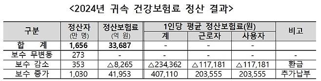 | ▲ 2024년 귀속 건강보험료 정산 결과 |