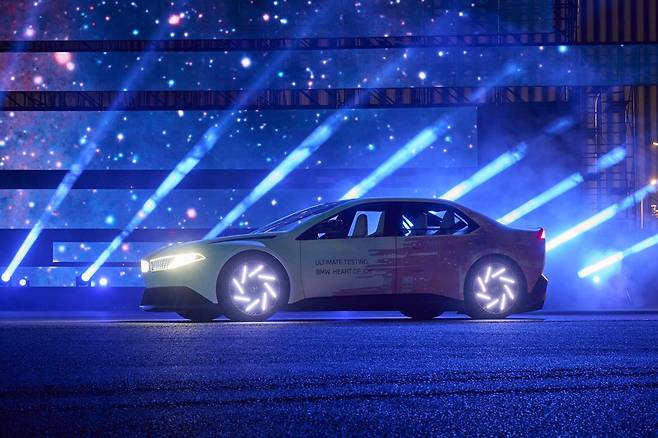 이날 공개한 신차는 BMW 비전 노이어클라쎄를 기반으로 주행 한계를 시험하며 새로운 컴퓨팅 시스템 '하트 오브 조이(Heart of Joy)'의 성능을 극대화 하기 위해 설계했다.
