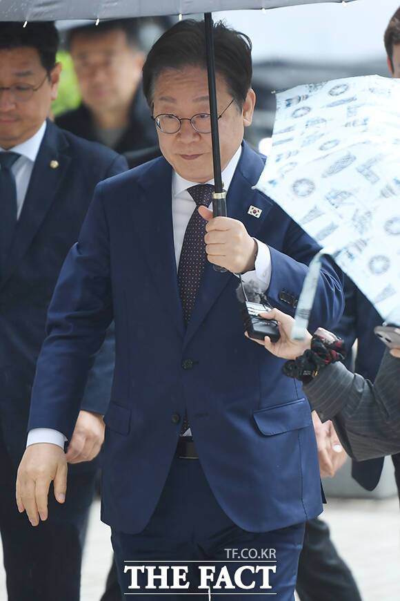 [더팩트ㅣ장윤석 기자] 이재명 더불어민주당 대선 예비후보가 22일 오전 서울 서초구 서울중앙지방법원에서 열린 '대장동·위례 개발특혜·성남FC 의혹' 관련 공판에 출석하고 있다.
