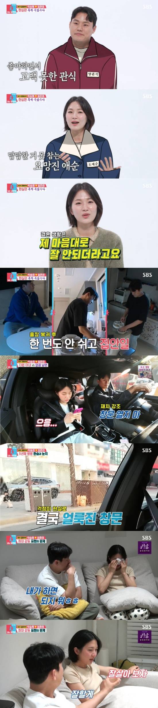 이에 남편은 “이혼까지 생각할 정도로 힘들다는 걸 몰랐다. 그때 딸의 양육권까지 생각했다는 걸 나중에 알게 됐을 때는 그만큼 힘들었구나 싶었다”면서 “'내가 사랑하는 사람에게 무심코 행동했던 것 들이 화살처럼 꽂혔을 수도 있겠구나'라는 생각이 들었다”고 말했다. 이어 “정리하는 습관도 바로 하는 게 내 맘 편하니까 아내에게도 그렇게 요구했던 것은 아닐까. 내 욕심으로 힘들게 한 것 같다“며 박승희에게 사과했다.