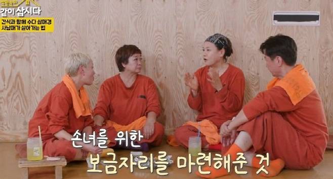 [TV리포트=박정수 기자] 배우 박원숙이 손녀에게 집을 마련해줬다. 21일 방송된 KBS2 '박원숙의 같이 삽시다'에서는 박원숙, 혜은이, 홍진희, 윤다훈이 숯가마 찜질방을 찾은 모습이 공개됐다.