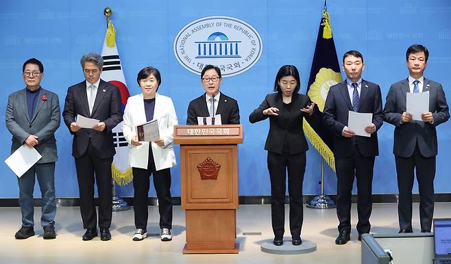 더불어민주당·조국혁신당 소속 법사위원은 22일 오전 국회 소통관에서 기자회견을 열어 "박 장관은 내란 은폐를 위한 알박기 인사를 당장 중단하라"고 발표했다.