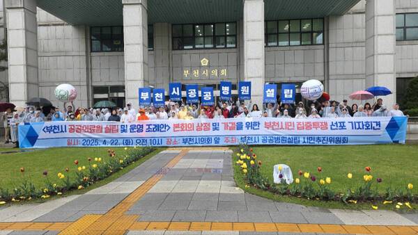 추진위는 "민간병원이 넘쳐나는 부천에 또 하나의 민간병원을 짓자는 꼼수에 시민들은 결코 동의할 수 없다"며 "시의회가 조례를 가결하지 않거나 민간위탁 조항을 넣는다면 향후 책임을 반드시 묻겠다"고 밝혔다.