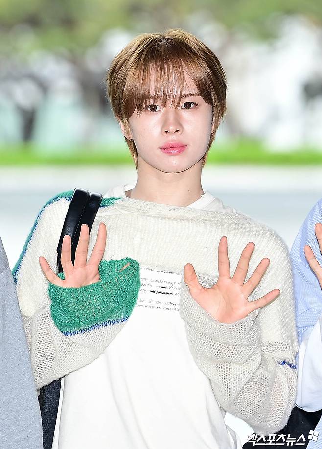 이날 녹화에 참석한 그룹 투어스(TWS) 경민이 출근길에 포토타임을 갖고 있다.