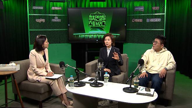정유미 기자 : 저희 스토브리그를 지난 전대 때, 그때 나오시고 오랜만에 모셨는데 사실 중간에 모시고 싶었는데 약간 적응이 안 됐어요. 나경원 의원님의 어떤, 예를 들면, 우리가 김·나·윤(김기현 나경원 윤상현 의원을 묶어서)이라고도...
