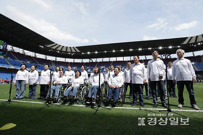 앞서 울산시에 거주하는 장애인, 비장애인으로 구성된 합창단인 ‘소나무 합창단’이 경기 식전 행사에서 합창을 선보였다.